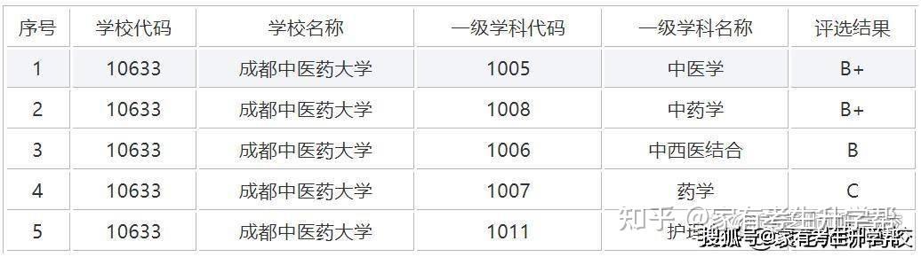 在第四轮学科评估中,成都中医药大学有5个学科上榜,其中最强的学科是中医学和中药学,被评为B+,具体可见下图。