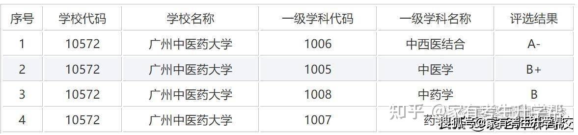 在第四轮学科评估中,广州中医药大学有4个学科上榜,其中最强的学科是中西医结合,被评为A-,中医学被评为B+,具体可见下图。