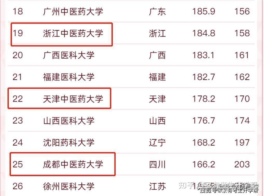 以2022年全国医药类大学软科排名来看,浙江中医药大学位居全国第158位,天津中医药大学位居全国第170位,成都中医药大学位居全国第203位,从院校排名来看,浙江中医药大学排名更为领先。