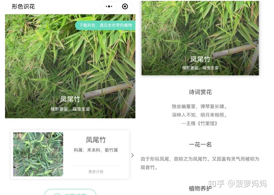 小程序通过拍照识别动植物,不但有植物百科,还有相关诗词、养护知识、植物趣闻等等。
