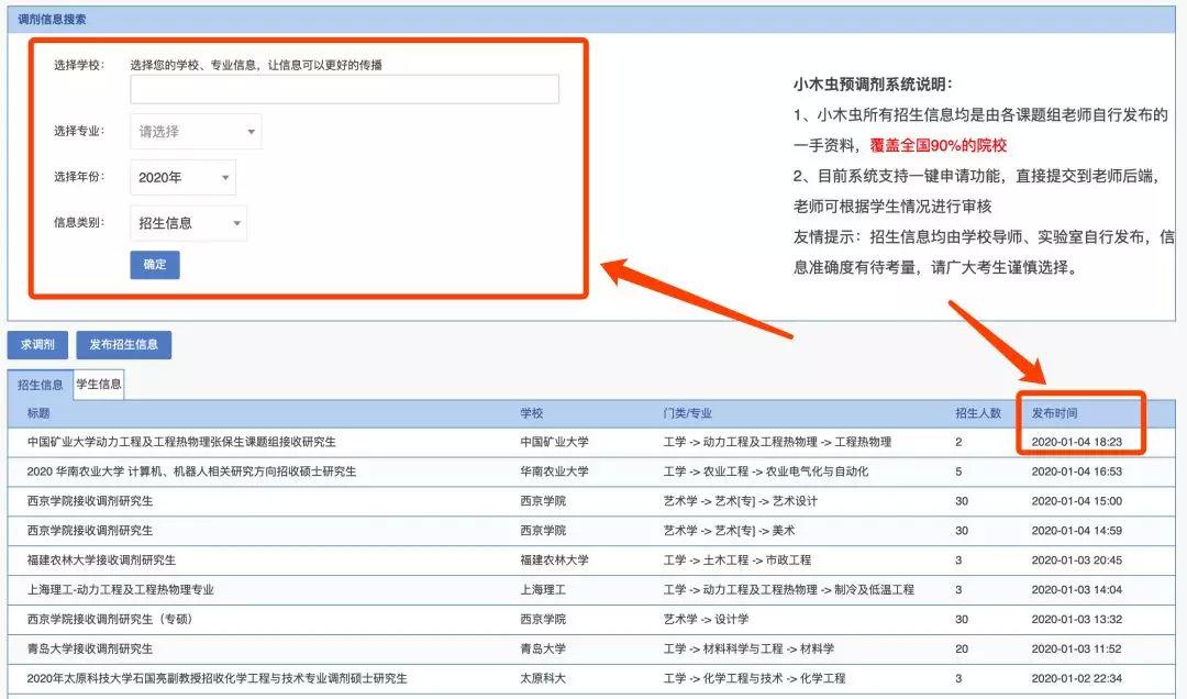 小木虫上的调剂信息算是目前比较多、可靠、及时的,大家可以按照下面步骤找一找调剂信息,多关注关注,遇到自己心仪的调剂信息,不要犹豫马上联系,调剂我们打的就是信息差+时间战。