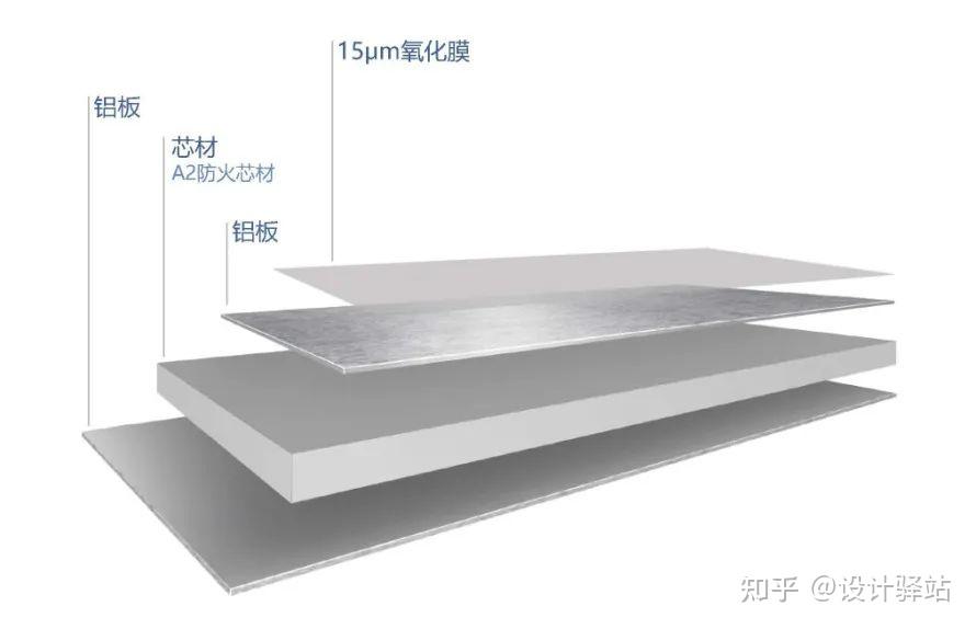 是一种“三明治”结构,通过热压工艺将氧化厚膜铝板、背铝板、防火芯材复合成一体板。
