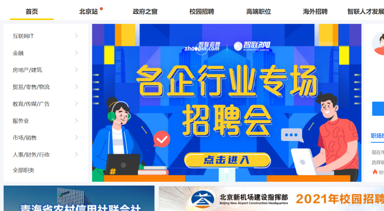 新手求职-智联招聘/前程无忧(老牌的综合招聘网站,垂直类岗位不多)