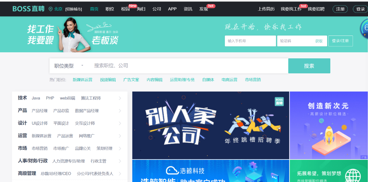 新手、中阶求职-拉钩/BOSS直聘(垂直型网站,以互联网行业为主,运营、产品、开发等)