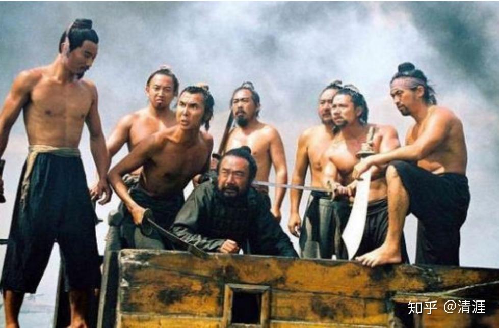 这里加一张图,是梁山水军将领活捉刘梦龙的情节,可以看到满屏的壮汉。从左至右:“浪里白条”张顺、“翻江蜃”童猛、“活阎罗”阮小七、刘梦龙、“船火儿”张横、“出洞蛟”童威、“混江龙”李俊、“立地太岁”阮小二。