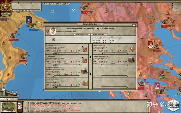 罗马内战题材,欧洲和地中海世界地图,包含公元前87-公元197年间的5个剧本,数百位历史人物和数百种兵种、大量历史事件以及针对古典时代战争调整的游戏机制和规则。包含简单的内政部分。