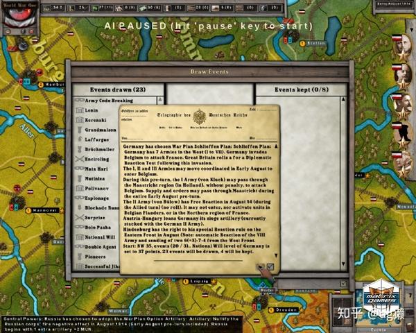 一战题材,欧洲和地中海世界地图(非洲等地区通过地图框加入),包括2个大战役,900多种军队、飞机、船只、1600多位历史人物以及数百件历史事件。包含简单的外交、经济和科研成分。