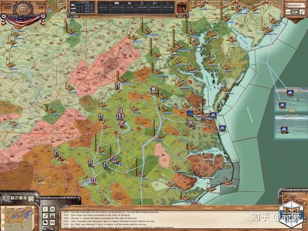 南北战争题材,北美地图,包含2个大战役和5个战役剧本,上千种兵种、400多位历史人物,有简单的经济管理和外交部分,总体属于比较纯粹的战棋游戏。