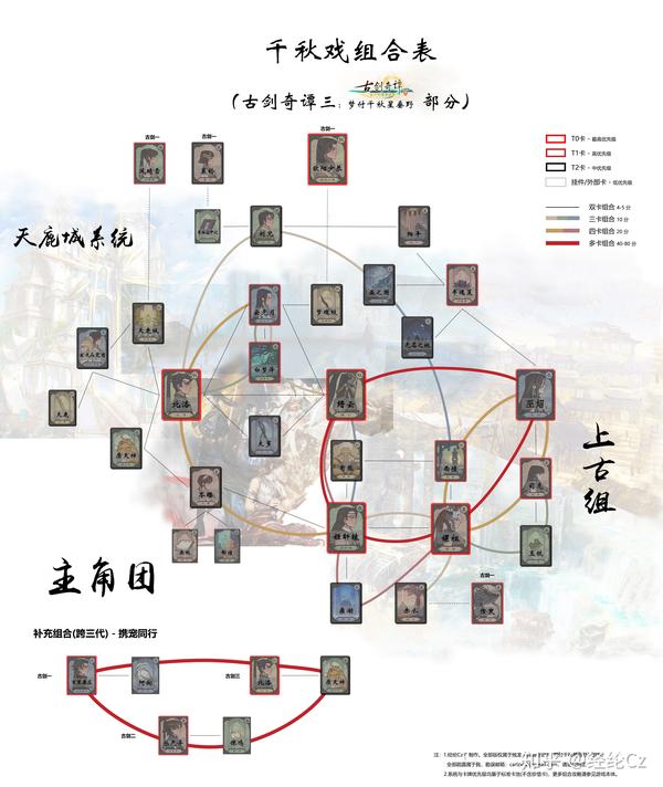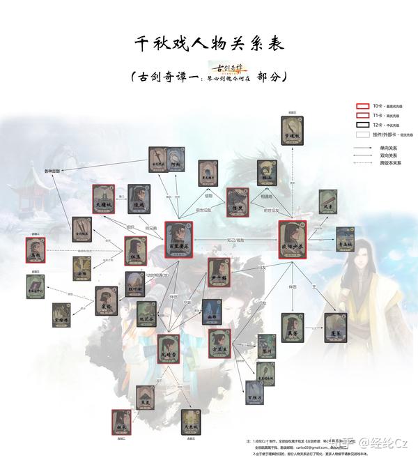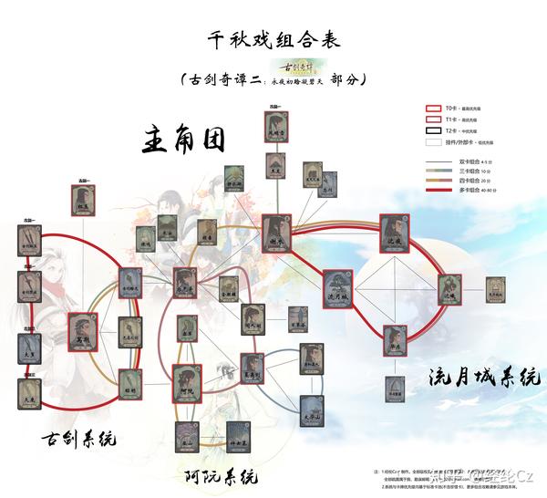 包括古剑一二标准包与古剑三补充包 - 所有卡牌组合以及人物关系图。