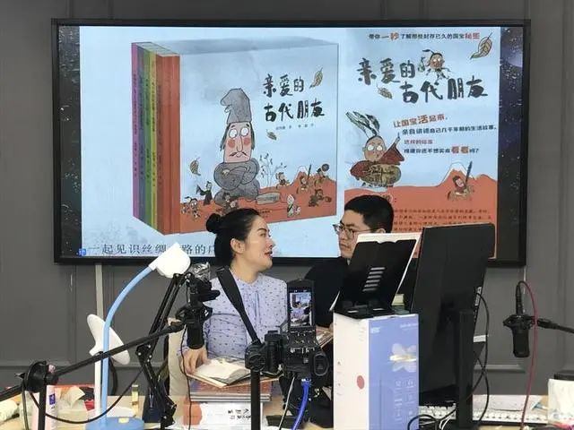 没有想象中的那么复杂,一台小摄像机,两个收声话筒,一个竖起来的显示器,构成了直播镜头后面的全部。