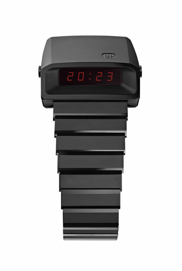 圣罗兰参与了GP芝柏表的制作过程,并重新设计了一下Casquette 2.0的外观。这款表对于GP芝柏表拥有一定的历史意义,因为在1970年代石英表风潮方兴正艾的时候,品牌也顺应趋势着手研发自己的石英表,最后的结论就是Casquette这款带有强烈未来主义的作品,它的造型犹如太空船般,LED显示不像多数石英表採用的与手腕平行设计,而是在面向佩戴者的立面设置LED显示,这样一来想看时间不需刻意转动手腕,可以很直接地看到萤幕显示的时、分资讯。