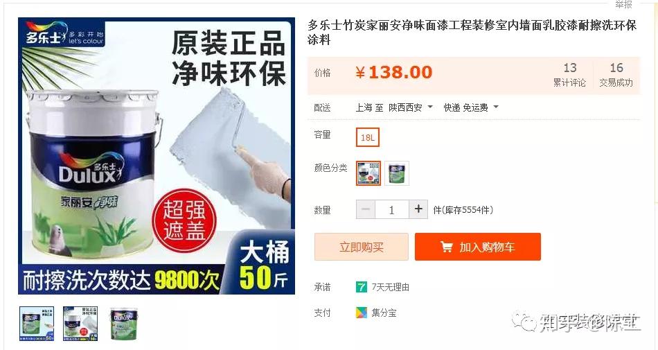 二、那么老百姓买多钱合适? 其实平时这个话题都有涉及,家用普通家庭,记着一条不变的真理:不论什么牌子,只要不是三无产品,能正规生产出来,都是有国家监管的。一大桶,这里的大桶指的的是15L或者18L,售价在一千左右的,就可以满足老百姓的需求。一是遮盖率好,一是环保级别无需担心。