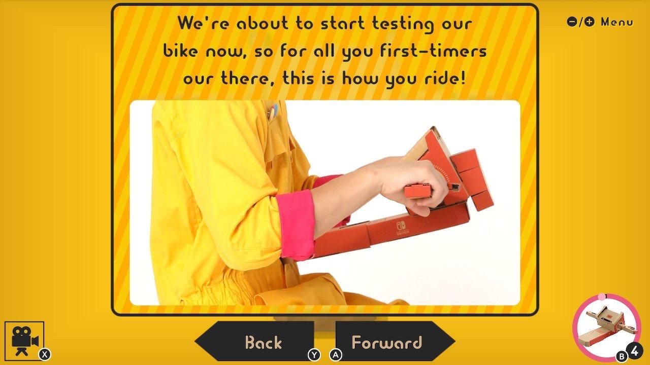 除了「拼装」这一独特的体验,小游戏本身带给人的玩法也是更加新颖。我将这五个小游戏认为是「1-2-Switch」的延伸,玩过「1-2-Switch」的人知道,这是一款需要在现实中有两位玩家一起完成的小游戏,类似 Xbox Kinect 的游戏。这次 Labo 里的游戏,也是让玩家脱离单纯的屏幕,把身体调动起来。以摩托车来说,你需要将双手握住车把手,用身体来控制车的方向,非常仿真现实中真实的开摩托车体验。