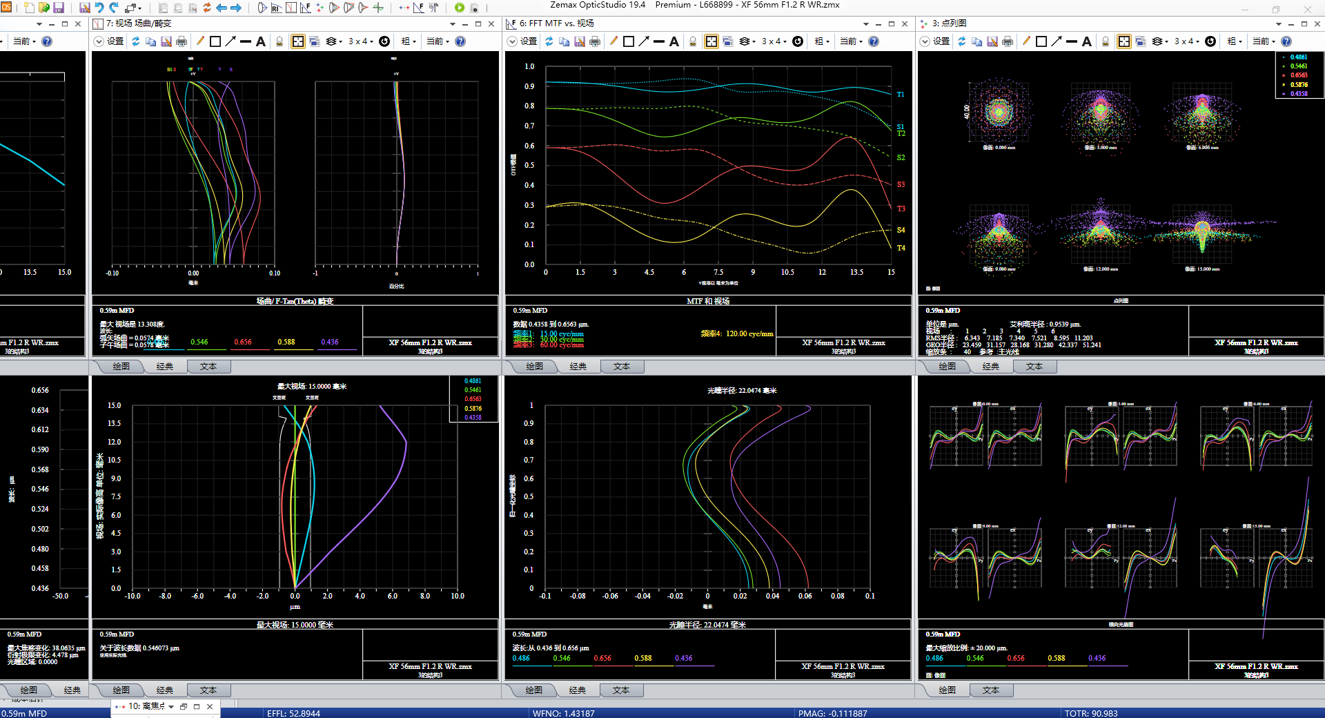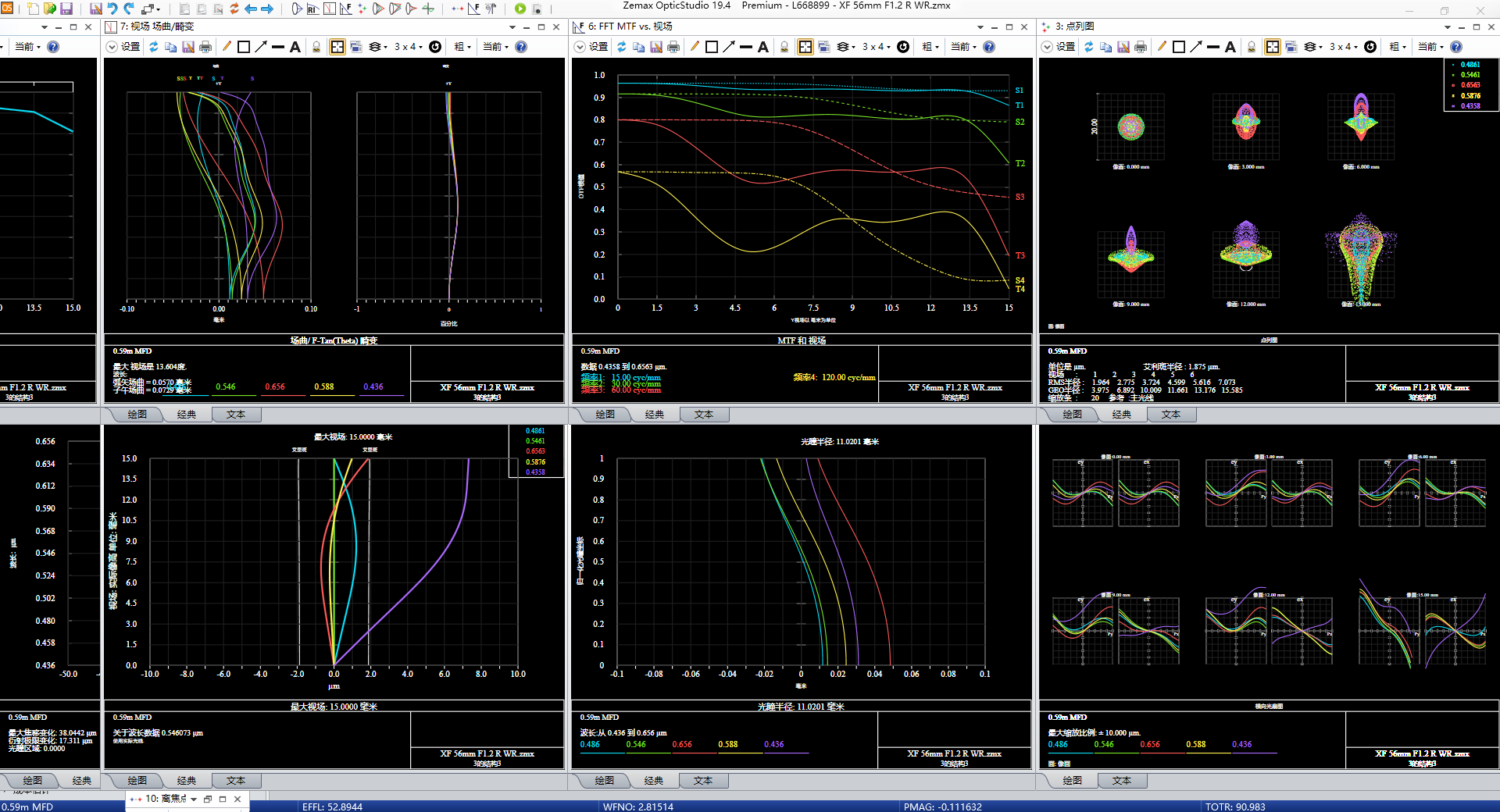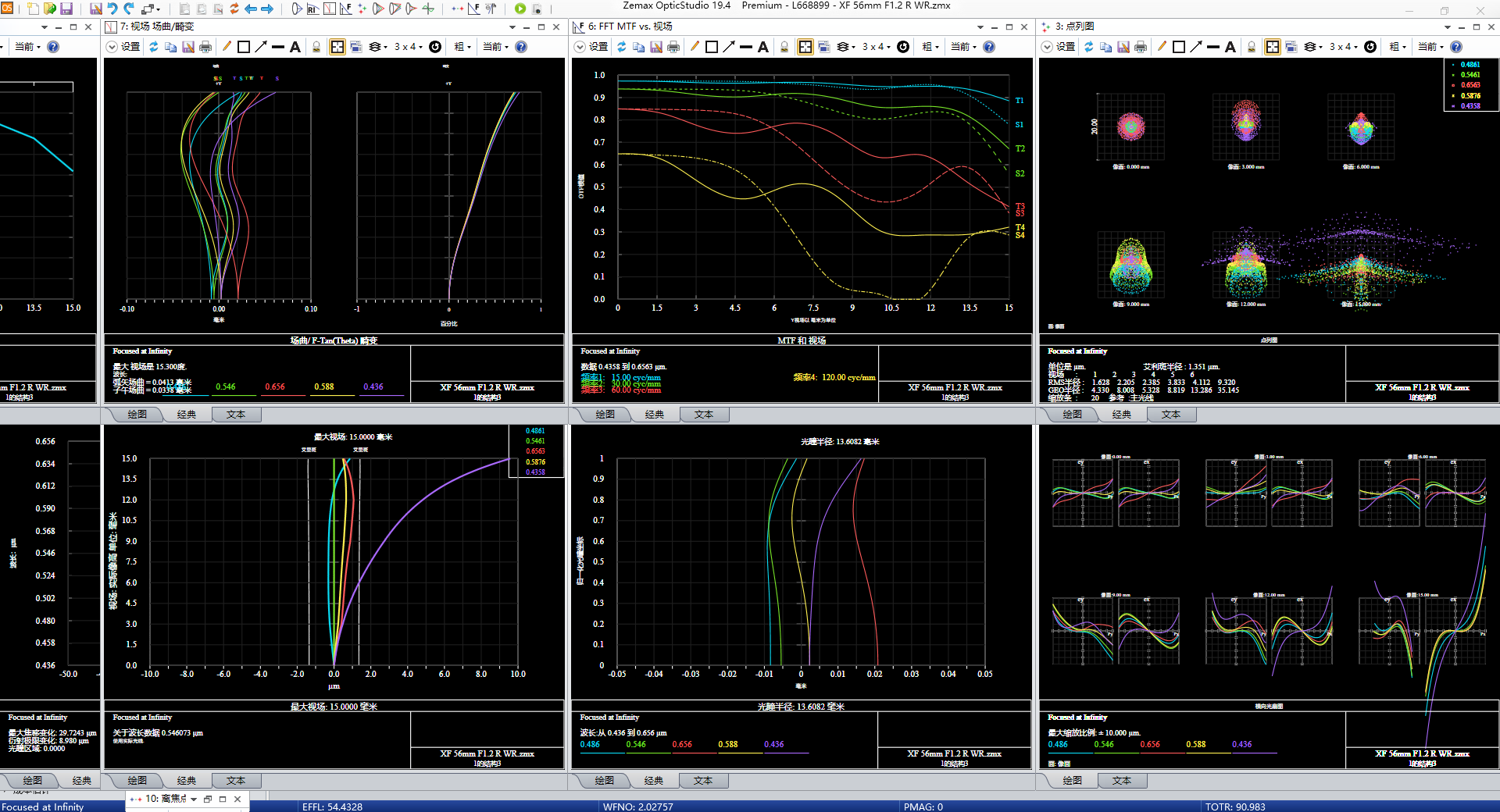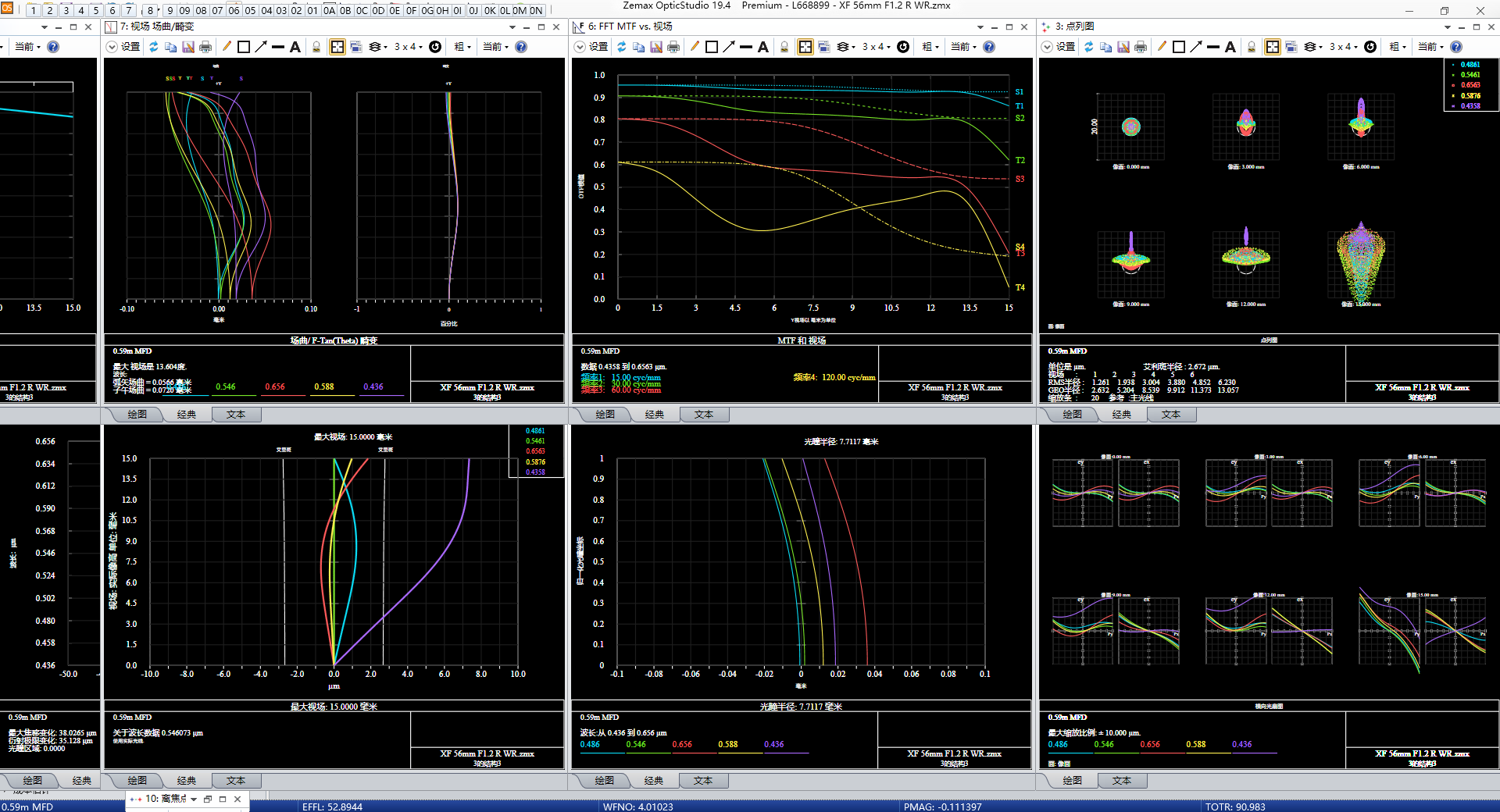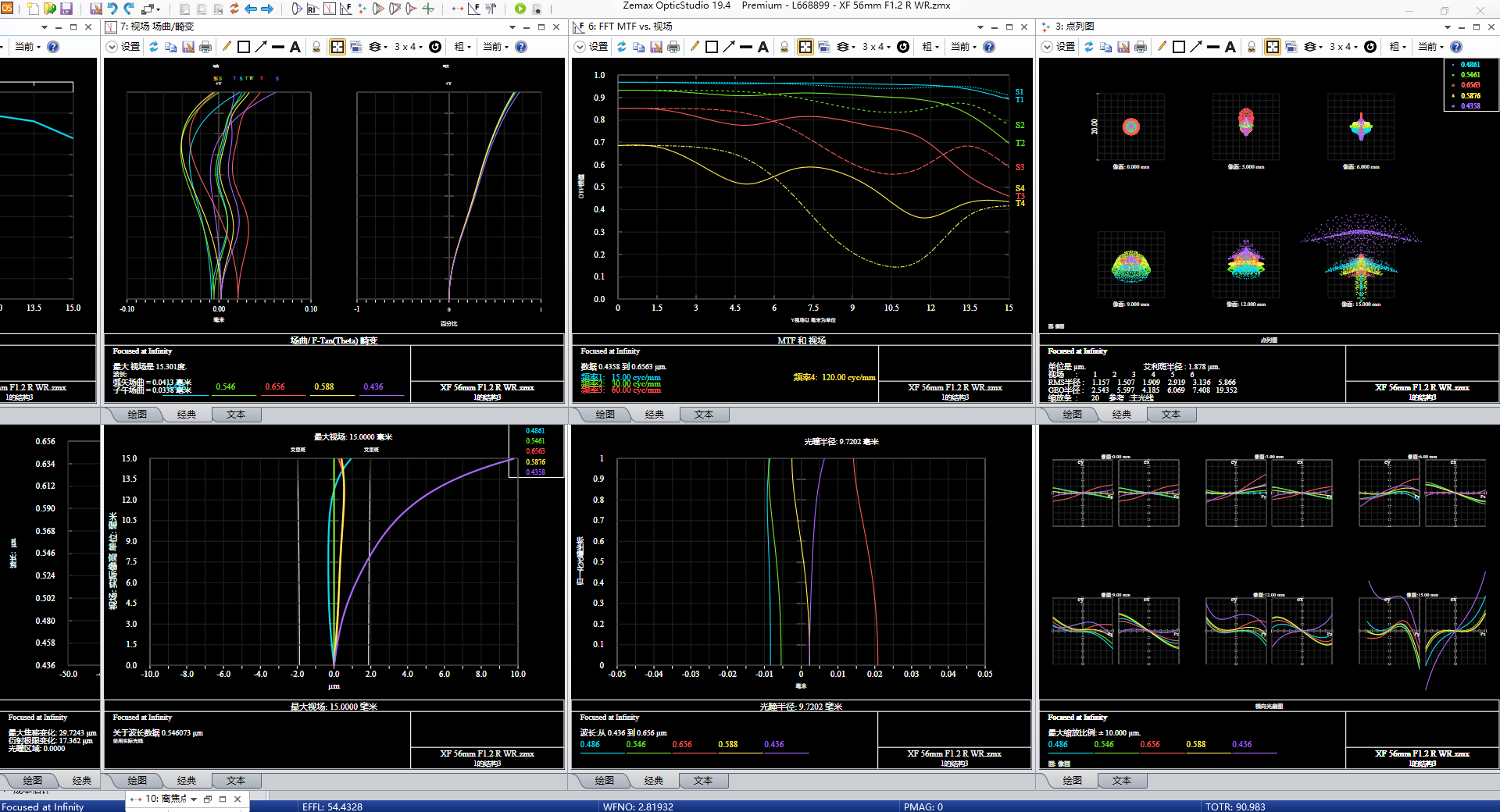F4衍射削平。衍射外加像散和倍率色散互相扯平,焦平面的白光MTF很平和。