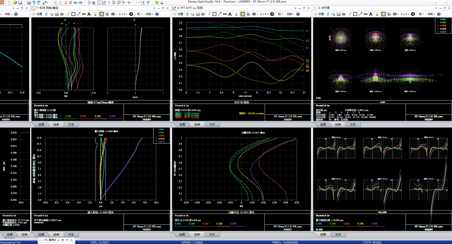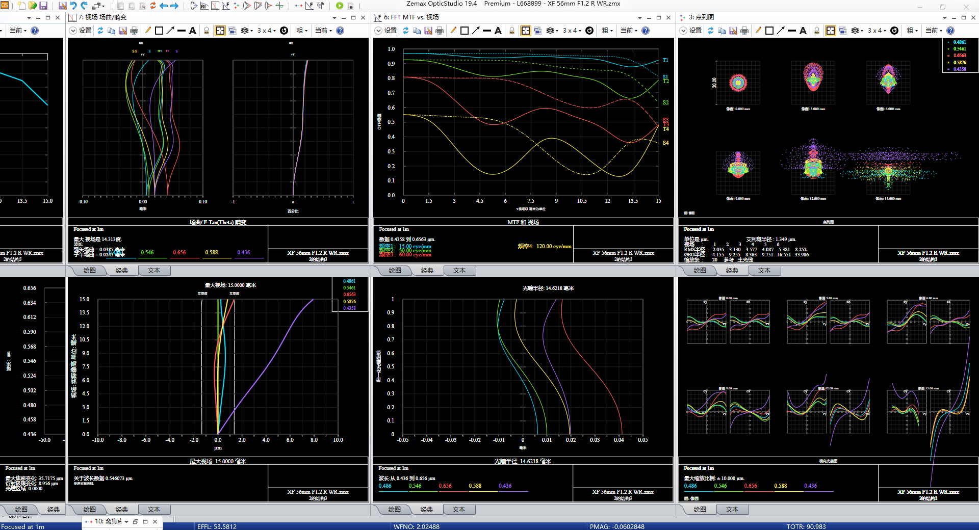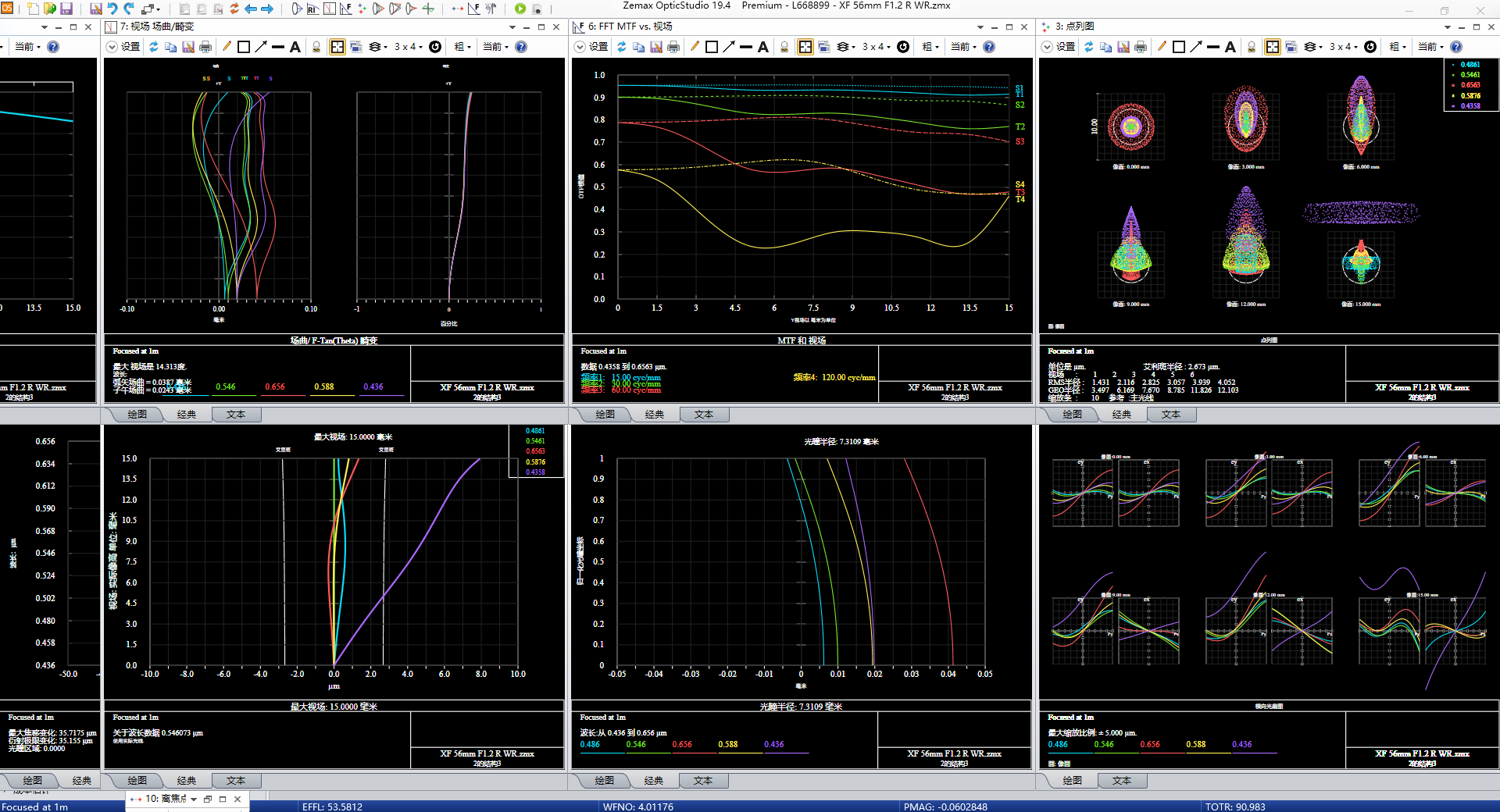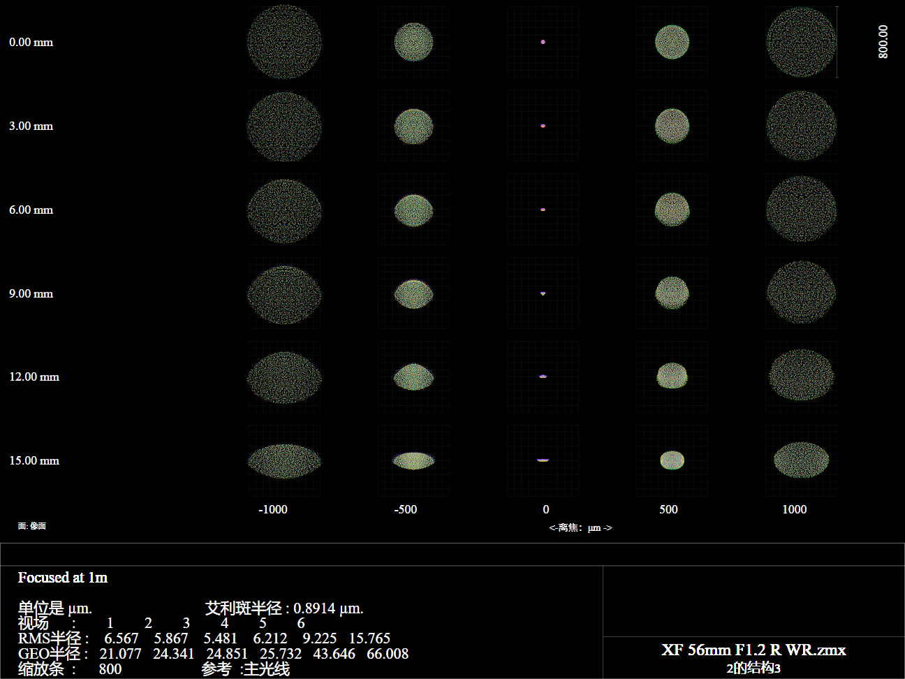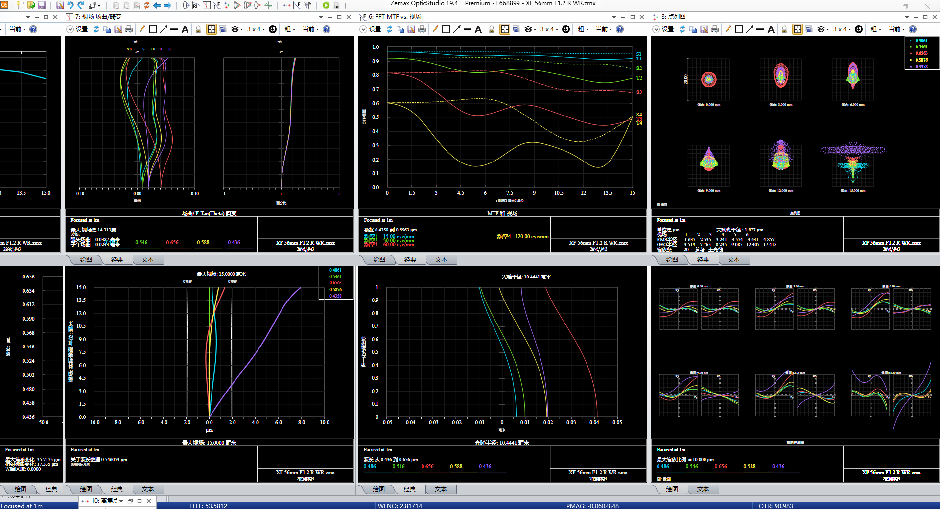 末尾的胶合和非球面针对性修正边角光束,同样使用了超高折射材料TAFD55,搭配最新的异常色散材料S-NBH58。在这个位置布置特殊色散材料是比较激进的,需要小心处理才能避免出现色彗差和色场曲的问题。