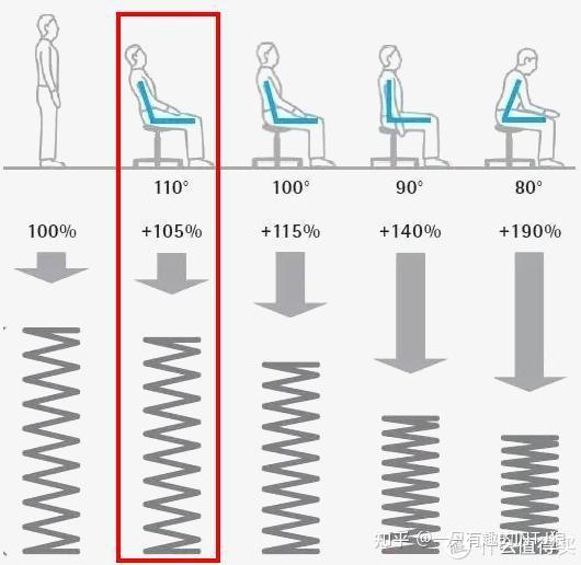 关于腰椎压力的,找不到130%的 不过按这个平躺是最低的,110度比100低,那战术后仰130°肯定是比较低的