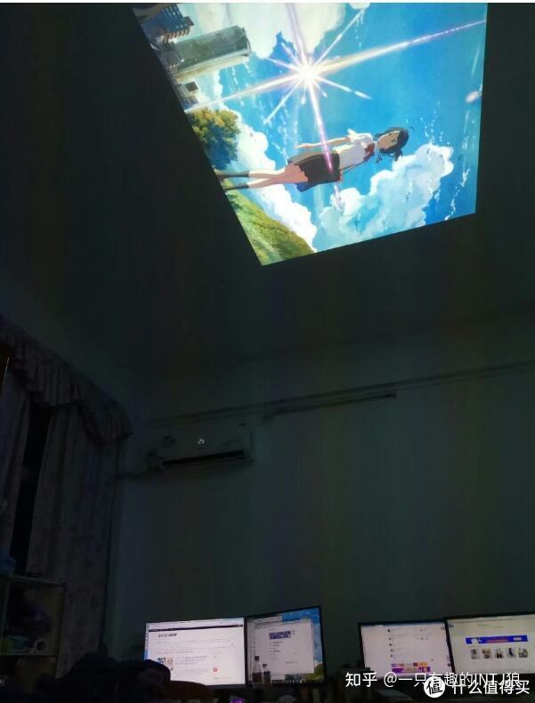 这是5年前玩投影的时候,纯粹看片或者手柄打游戏是挺好,但真的不能打字那类或者工作的,你躺床上玩手机就知道,手垂直 很快就受不了,除非你能单手盲打 键盘 。不然手受不了的,所以这个方案我早就不玩了,现在有空间了楼下弄了200寸投影了,最近有换了蜂米MAX的亮度提升真的舒服