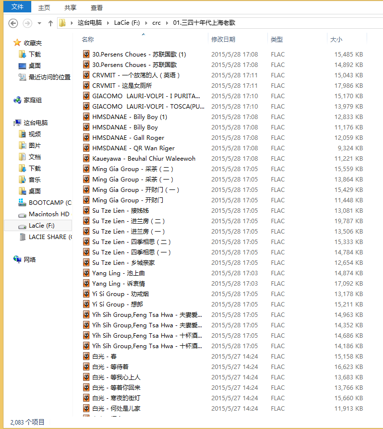 因为工作关系,我入驻中唱做数字化资料整理三年多。 这张图内的音频文件,就是现在被保留下来的民国流行音乐,一共有2083首。 这部分音乐来自于我们解放初期对中国几个唱片公司版库的盘点,这些音乐有一部分已经没有唱片存世。中唱上海的老工程师们把压制唱片用的模板当作载体进行采录,留下了这些珍贵的音乐。我应该是为数不多的(可能真的是绝无仅有的)把这2083首都听过一遍的人。结合我能看到的一些史料,收集到的一些唱片,给大家介绍一些这个时代比较重要的歌手。