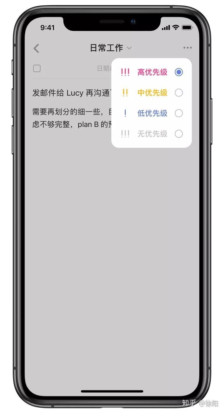 滴答清单提供了四个优先级: 高优先级/中优先级/低优先级/无优先级。