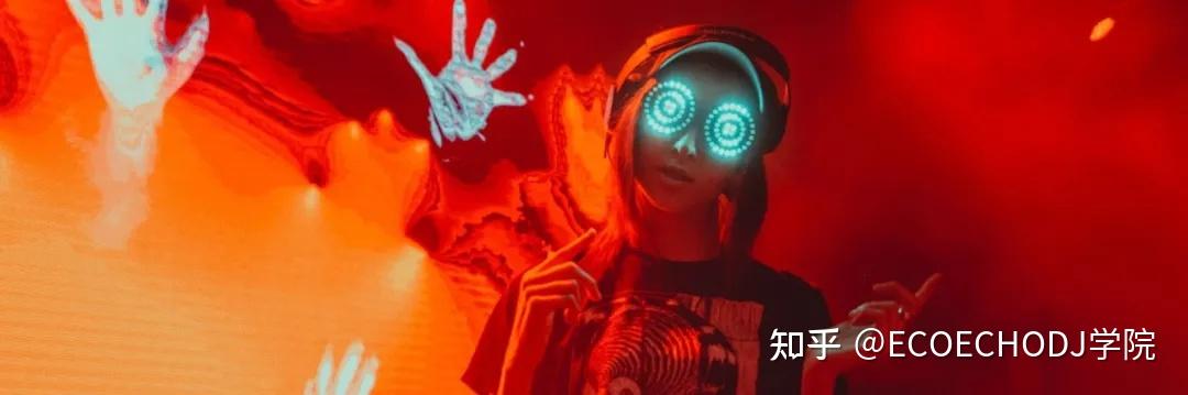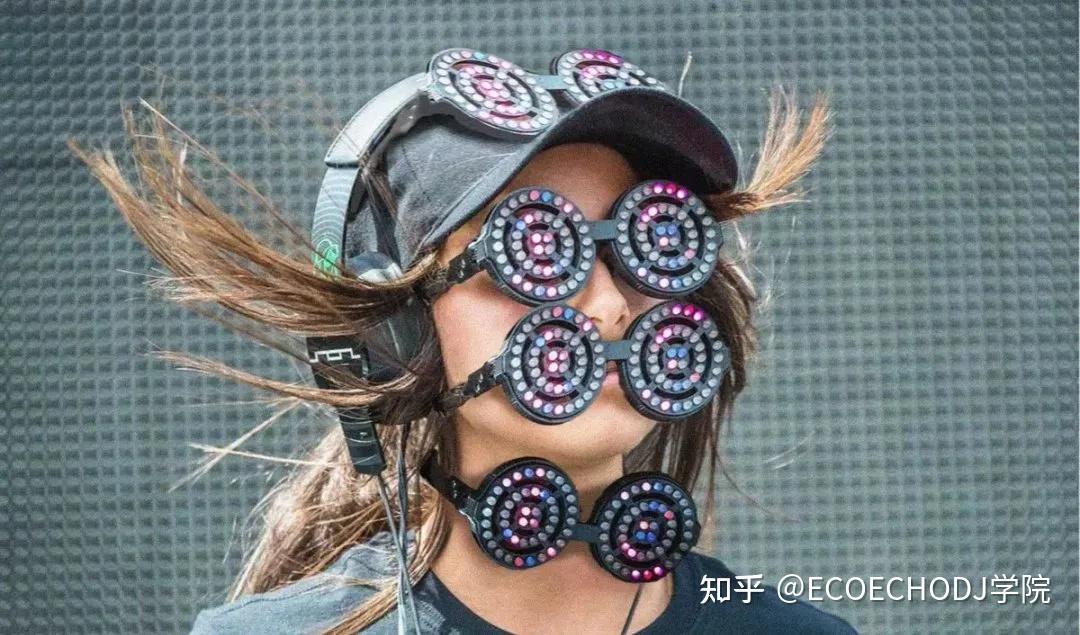 舞台上的她,总是戴着标志性的螺旋护目镜,镜片旋转着放射出红光,她的舞台视觉风格也常常被打造得诡异且迷幻。暗黑的风格和现场,正是Rezz有如此多拥趸的一大原因。