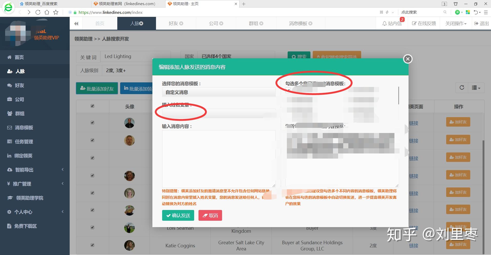 03. 借助上面所提到的领英助理来实现,在发送添加好友邀请消息里,设置插入对方的姓名变量,实现发给对方都是有非常礼貌的称呼。