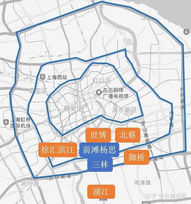如果再加上南北高架、中环和外环,到浦东的张江、御桥、花木和浦西也非常方便。