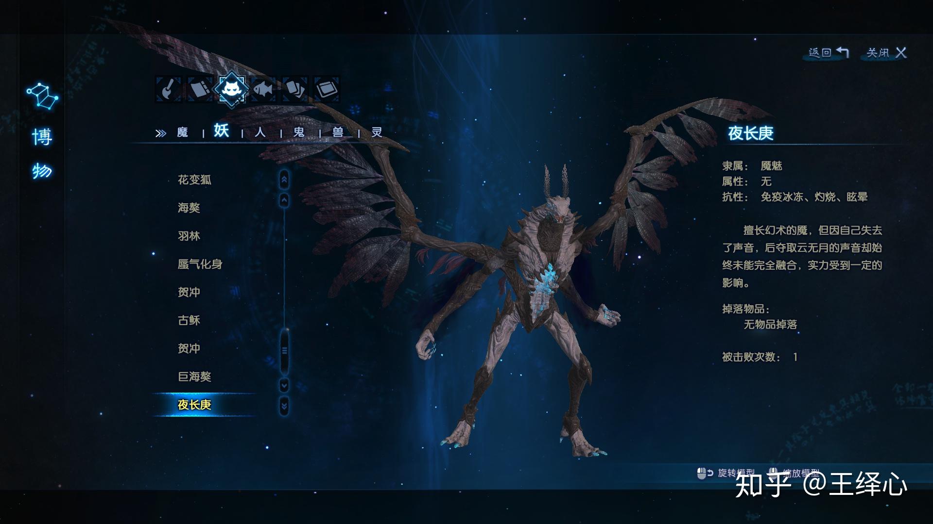 游戏末期从巫之国回莲中境休息时可以打夜长庚夺回云无月的“声音”,夜长庚的博物图鉴如下,大家可以自行对比。