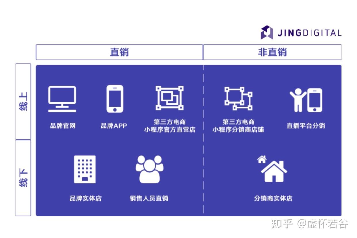 总的来说,根据参与到整个销售链条的主体,可以将销售渠道分为直销渠道和非直销渠道。顾名思义,直销渠道指的是企业或品牌方直接向最终消费者提供商品或服务的渠道。而非直销渠道,则是并非从厂家直接提供给最终消费者,而实借助各级的中间商实现最终销售转化的渠道。如果根据渠道的数字化属性进一步细分的话,销售渠道又可以进一步划分为:线上直销渠道、线上非直销渠道、线下直销渠道、线下非直销渠道。