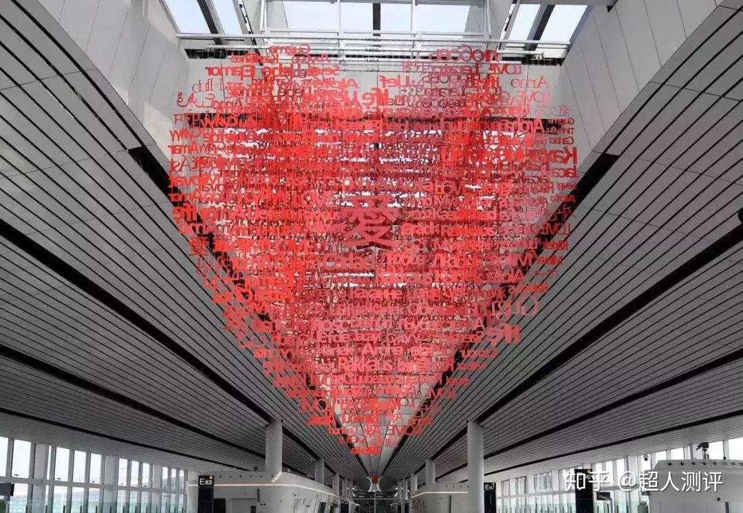 除了这些显而易见的,大兴机场的小心机也不少,比如用所有语言写成的「爱」的挂饰——