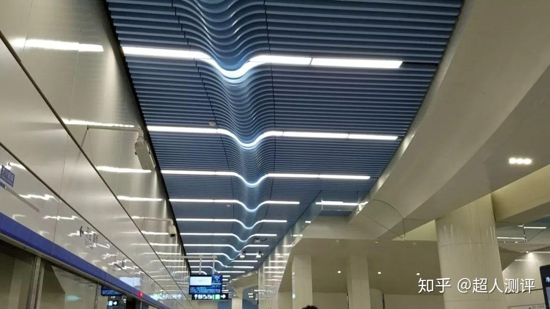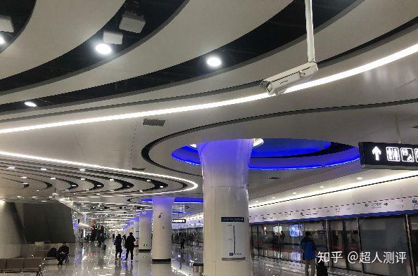 踏进大兴机场地铁线的那一刻,就有内味儿了。柱子是可变换颜色的电子花瓣形支柱,屋顶是各式流线型彩灯,锃亮的地面完完全全成了一面巨大的玻璃,超妹觉得整个世界都太晃。