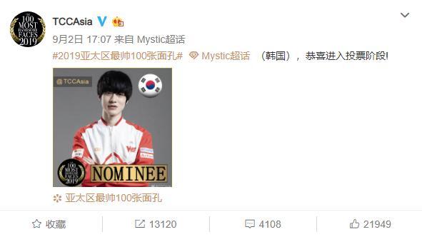 帅的出圈了?WE.Mystic成功入选TCCAsia2019亚太区最帅100张面孔