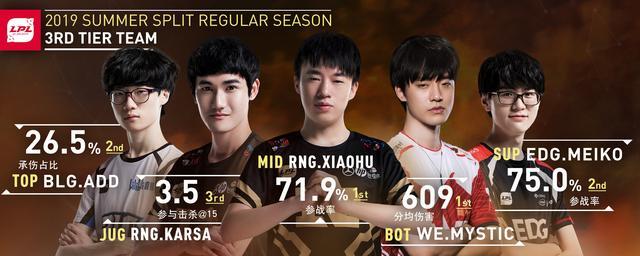 除了外表帅气之外,Mystic的个人实力也毫不逊色。2019年,在WE战队战绩不佳的情况下,Mystic这位老将却依旧保持着自己爆棚的状态,春季赛入选最佳阵容一阵的ADC位,夏季赛作为最佳阵容中唯一一位没有进入季后赛的选手入选最佳阵容三阵的ADC位,都是对他实力的最大肯定。WE战队目前进入重组期,还有着磨合和经验上的不足,而Mystic永远都是WE发挥最稳定的点,带领着WE前行。