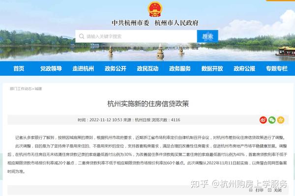 2022年11月11日对杭州首套住房的贷款部分认定条件、二套首付比例以及首套房、二套房贷款利率进行了调整。