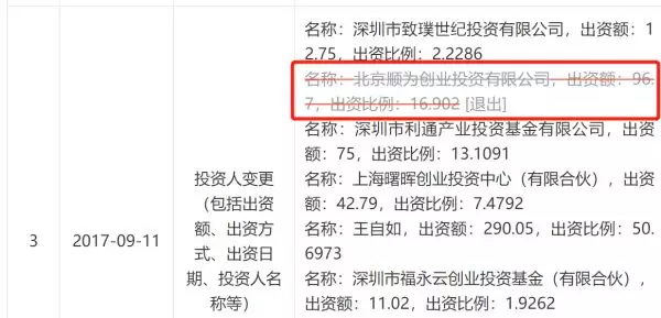 从持股变动的数据中,也可以看到顺为资本变成了灰色,代表已退出。
