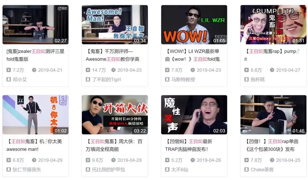 不仅微博,B站也彻底沦陷,王自如开箱成了鸡你太美、你好骚、五五开、大碗宽面、真香 同级别的梗,光鬼畜类的视频就有好几百个