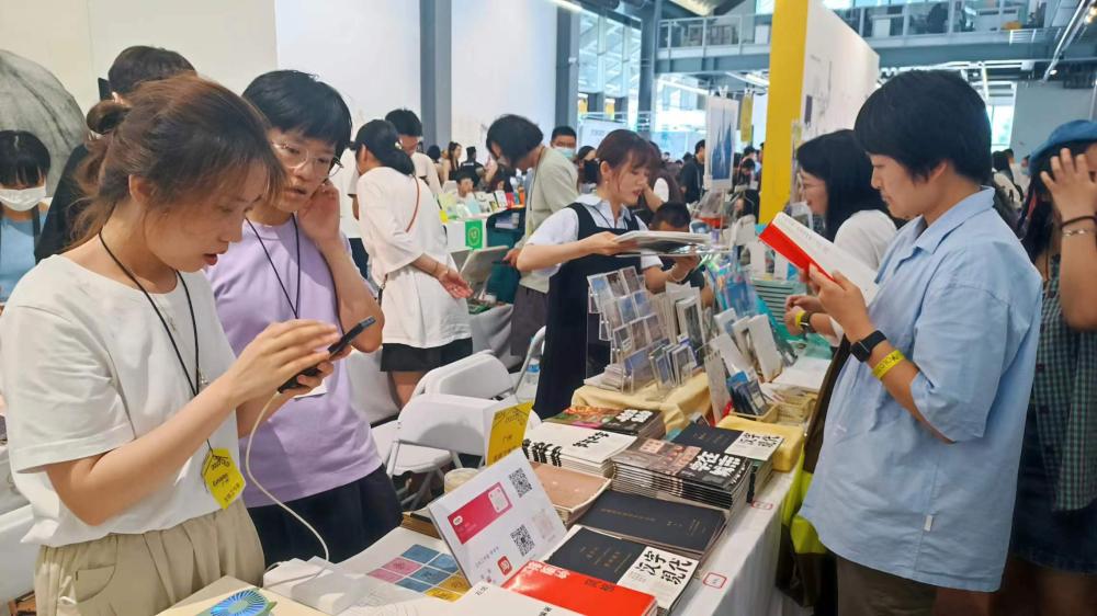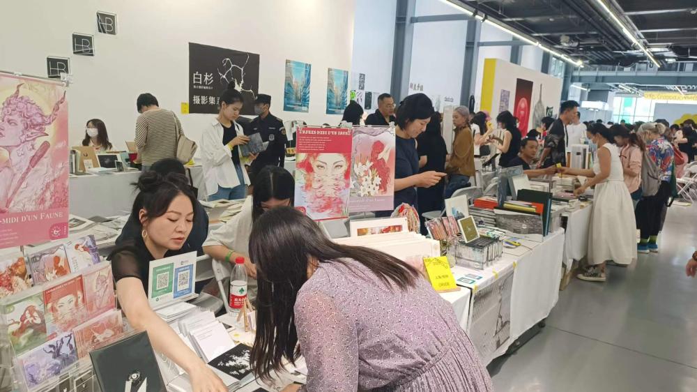 关注书籍艺术、书籍创作、样本书装帧设计和小册子制作的专业性书展——上海艺术书展6月9日至11日在徐汇滨江星美术馆铺陈艺术与书的联系。为期三天的展会中,来自全国各地的参展商和读者以艺术书籍为窗口开展线下交流和互动。开幕当天下午,热情的读者已将现场“挤”到限流。