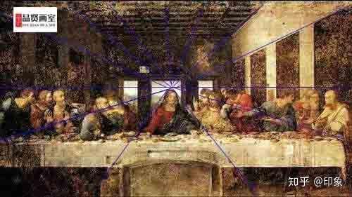 下图是达芬奇的《最后的晚餐》整个场景按照一点透视图来画的