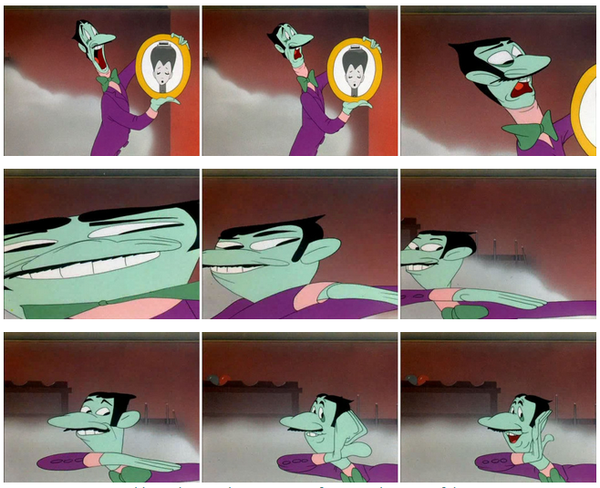 这十二条中,时间(Timing)、演出/布局(Staging)等等其实是所有动画风格中必须的,但是各个风格流派对他们 具体的诠释会不同 。如夸张(exaggeration),华特迪斯尼认为的夸张是基于 可信程度 上的戏剧化夸张,事实上,无论是之前橡皮管动画还是之后华纳/MGM,甚至 UPA 的极简主义,他们也都是夸张。