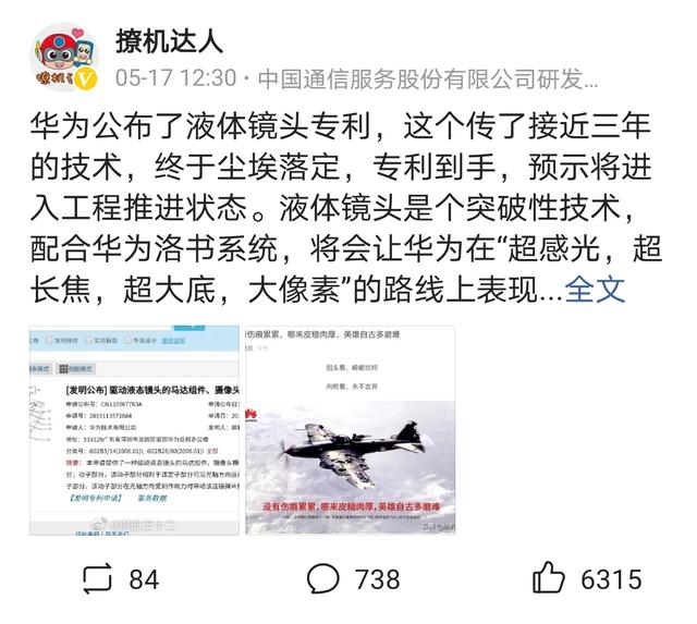 最近看到又有人把华为液体镜头的专利拿出来说事,在当前华为被美国打击,全民都在顶华为的非常时期,这些不负责任的自媒体,断章取义胡吹,实际上是在给华为下绊子。