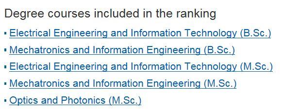 2017年USNews世界大学排名学科排名显示,KIT的众多学科排名世界前100,在德国以下专业学科均名列前茅:
