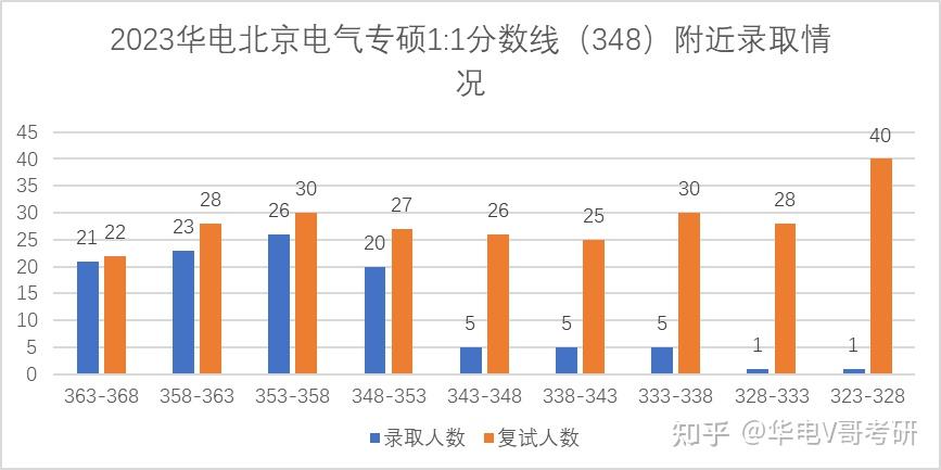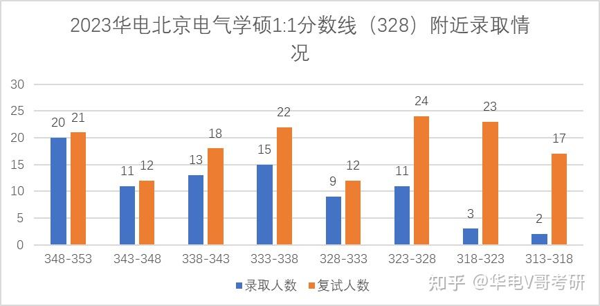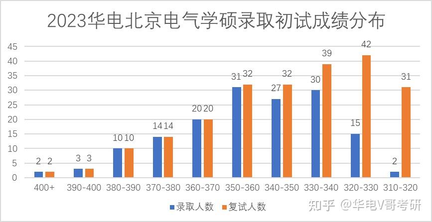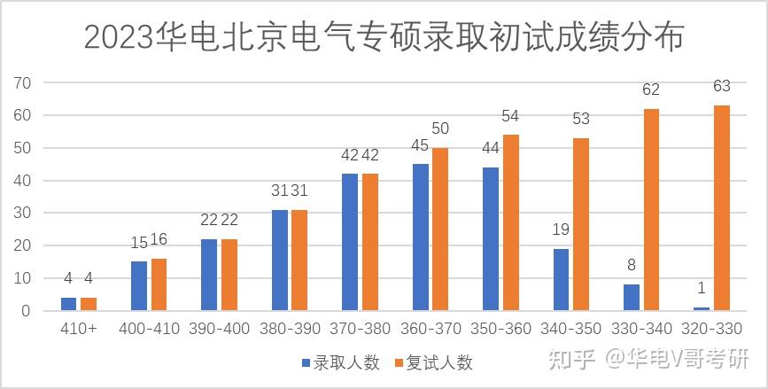 从今年的成绩分布可以看初,绝大部分成绩都在330-390这个区间内,高分和低分并不多。23年华电北京电气学硕分数温和,1:1分数相较去年分数降低15分,主要原因是因为北京今年专业试卷计算量加大,导致专业课平均分明显低于去年,对于24考研的学生来说,如果选择北京学硕,千万不可将自己的目标分数订得太低,一般建议大家以平均分为目标,初试能考到平均分,复试正常发挥基本就没问题。